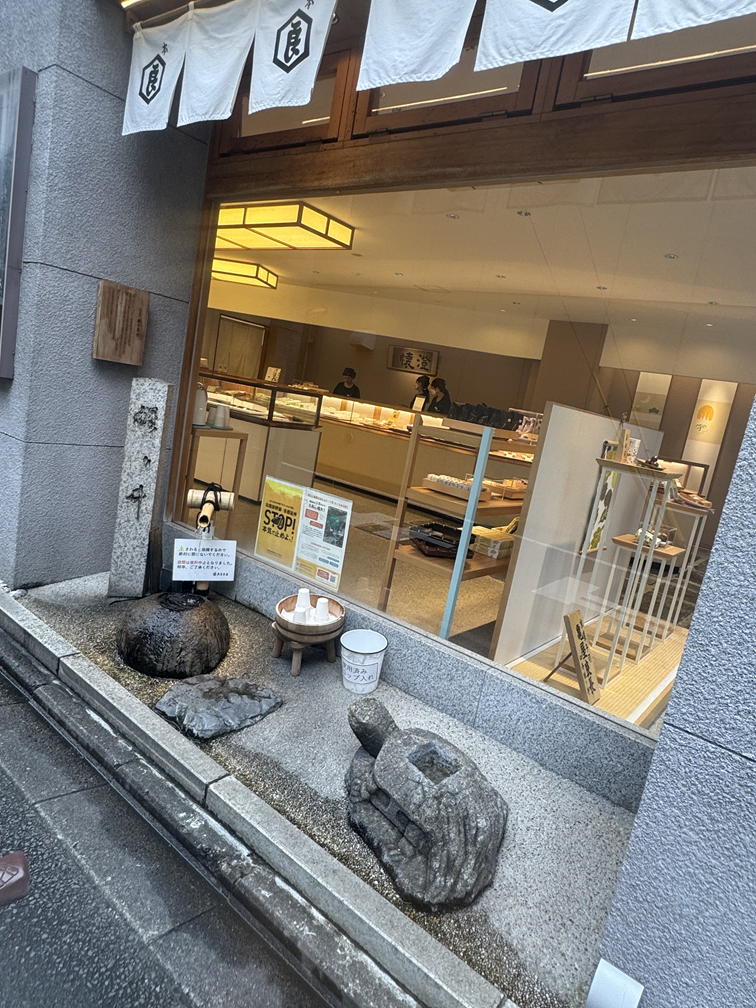 その左女牛井の水脈の水を湧き水として管理されている和菓子屋さんがあります。