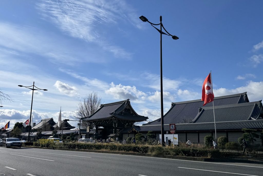 いいお天気に広い西本願寺の建物と旗が映えます🏳🌈