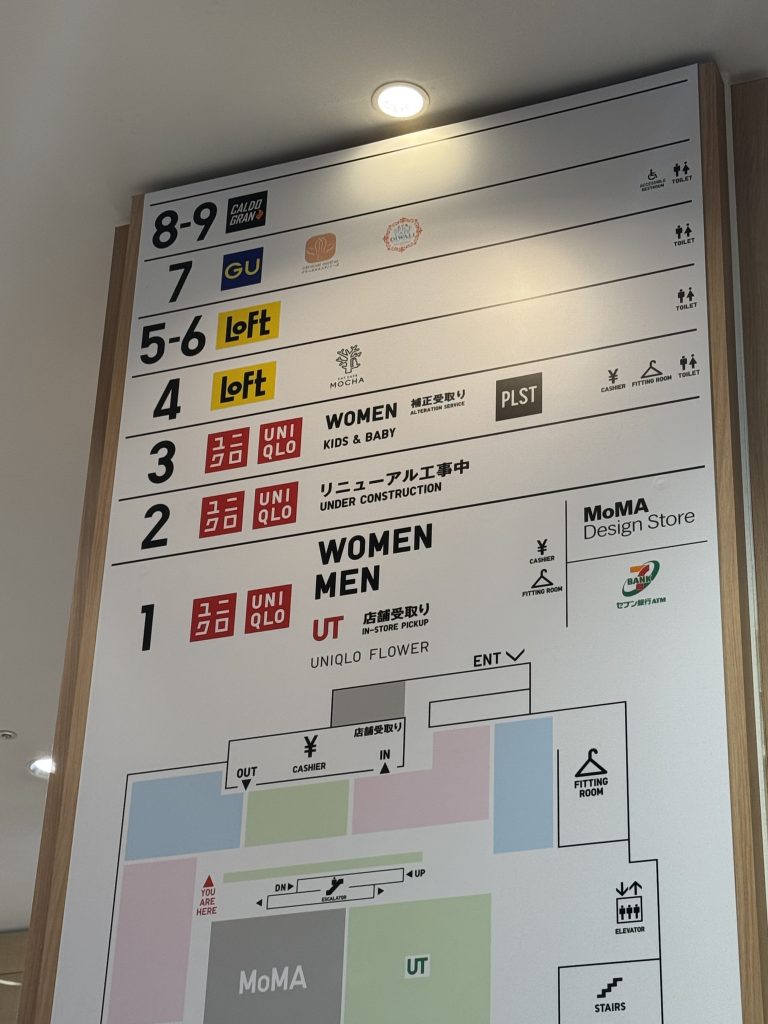京都のミーナにあるユニクロは京都で一番大きくて、京都オリジナルのTシャツとかも多くある。。