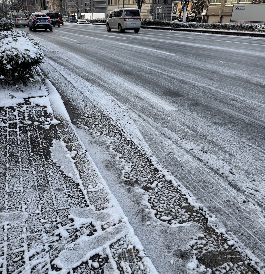 車道も凍ってた京都![]()